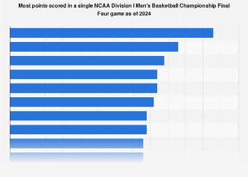 National Collegiate Athletic Association. “Most points scored in a single game in the 2024 Ncaa Division I Men’s Basketball Championship Finals.” StatistStatista Inc., January 29, 2025, https://www.statista.com/statistics/287540/ncaa-men-s-college-basketball-final-four-single-game-scoring-records/?__sso_cookie_checker=failed