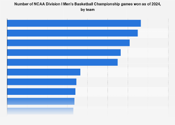 National Collegiate Athletic Association. (October 17, 2024). Number of NCAA Division I men’s basketball championship games won in 2024, by team (graph). In Statist. Retrieved March 3, 2026, from https://www.statista.com/statistics/1107057/march-madness-game-wins-number-team/?__sso_cookie_checker=failed