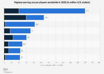 Forbes. (May 15, 2025). Highest-earning soccer players in the world in 2025 (in millions of US dollars) (Graph). In Statist. Retrieved March 1, 2026, from https://www.statista.com/statistics/266636/best-paid-soccer-players-in-the-2009-2010-season/?__sso_cookie_checker=failed