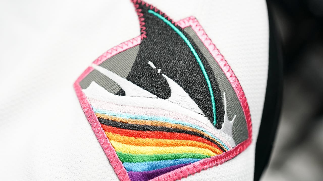 The Predators logo was given a mosaic look on the inside with an extended blue shadow featuring four stars and was striped around the edges with rainbow colors. Mia Sainea Memphis illustrator nominated by the Smithsonian, reinvented the logo for the special themed evening.