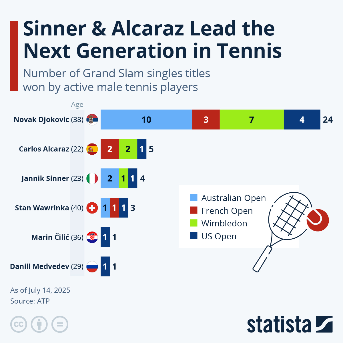 Share Facebook Twitter LinkedIn Pinterest Email Sinner and Alcaraz lead the next generation of tennis Statist